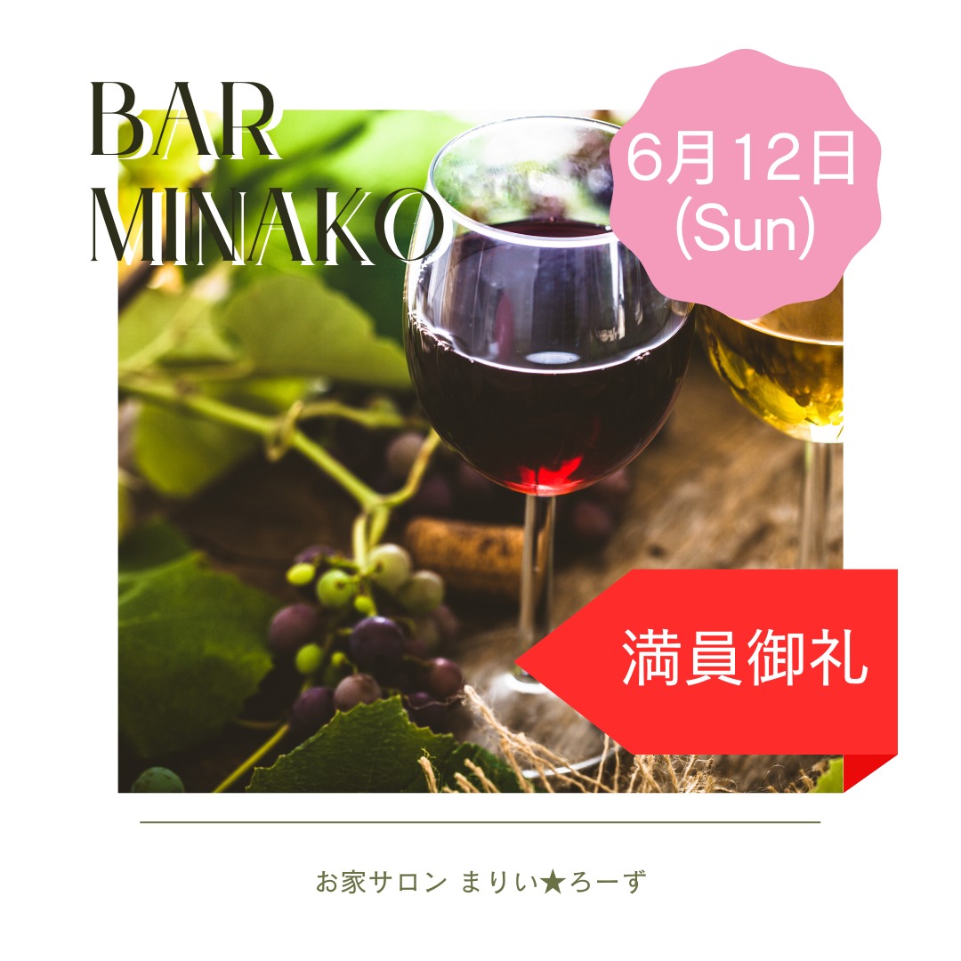 イベント2022.06.02🌹満員御礼 6/12 BarMinakoお陰様でこちらのイベントは定員に達しました✨お申込み・お問い合わせいただいた皆様、ありがとうございました。6/2以降は、キャンセル待ちの受付とさせていただきます。もしキャンセル待ちでお申込みされたい方は、「キャンセル待ち」と記載の上 →フォーム← にてお申し込みください。オーナーより改めてご連絡させていただきます。イベント内容を確認したい方はこちらからどうぞ!😊